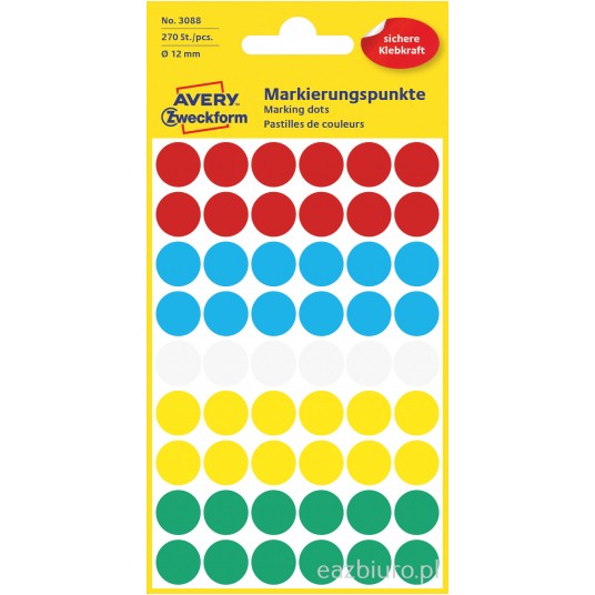 Kolorowe kółka do zaznaczania Avery Zweckform; 270 etyk./op., o12 mm, mix kolorów | espryciarze.pl |Zamów online!