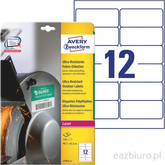Etykiety polietylenowe ultra resistant Avery Zweckform, A4, 10 ark./op., 99,1 x 42,3mm, białe
