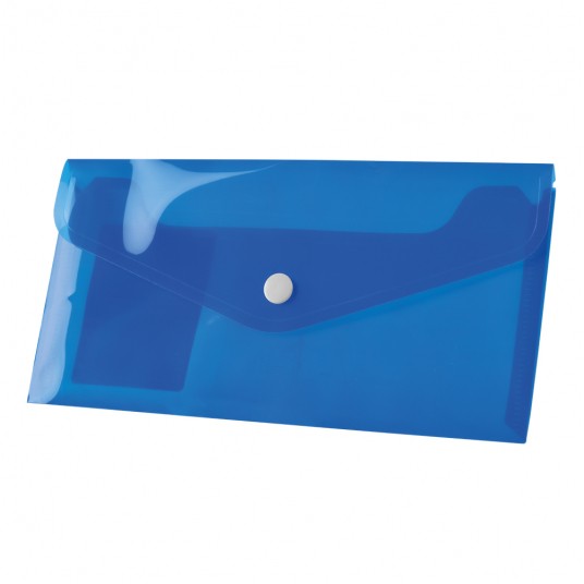 - Koperta PP na zatrzask, mieszcząca format DL. - Wymiary koperty: 220x110 mm, grubość tworzywa: 0,14 mm. - Dostępna w czterech kolorach (niebieski, czerwony, pomarańczowy, żółty).