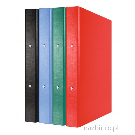 - Wykonany z tektury o grubości 1,9mm i gramaturze 1170gsm - Pokryty ekologiczną folią polipropylenową (100µm) o strukturze płótna - Wewnątrz biała wyklejka papierowa - 2-pierścieniowy mechanizm w kształcie litery O - Średnica pierścieni: 30mm - Szerokość grzbietu: 45mm - Wymiary: 45x320x262mm - 2 lata gwarancji na mechanizm - Kolor czerwony