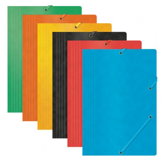 - Zamykana za pomocą 2 płaskich, narożnych gumek w kolorze teczki