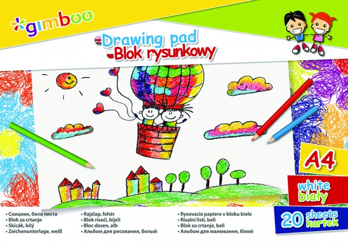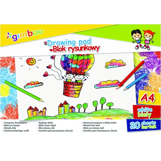 Blok rysunkowy Gimboo, A4, 20 kartek, 70gsm, biały