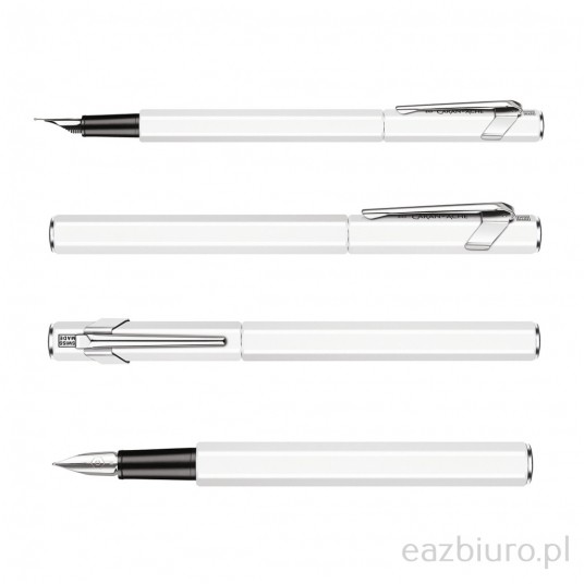 - Kultowa kolekcja 849 marki Caran d’Ache została wzbogacona o pióro wieczne - Wykonane z aluminium o heksagonalnym kształcie, posiada elastyczny klips - Stalówka wykonana ze stali szlachetnej w rozmiarze EF (ekstra cienka) - Pióro wieczne z podwójnym systemem napełniania - Posiada nabój atramentowy w kolorze niebieskim (Idyllic Blue) na start - Możliwość zamontowania konwertera - Pióro wieczne umieszczone w eleganckim firmowym pudełku - Kolor: biały