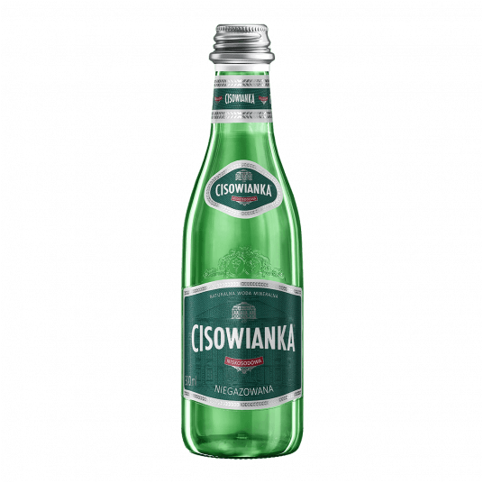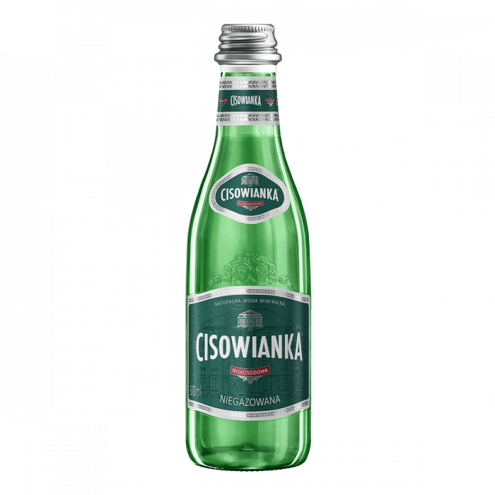 - Naturalna woda mineralna Cisowianka, średnio zmineralizowana, niegazowana zamknięta została w szklanych butelkach