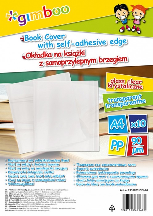 - Okładka na książki w arkuszach - Z samoprzylepnymi brzegami dla łatwiejszego obłożenia książki - Rozmiar: 30,5x55cm - Grubość folii: 90µm - Kolor transparentny