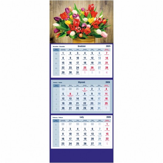 - Układ kalendarium: 1 miesiąc - 1 kartka