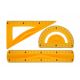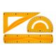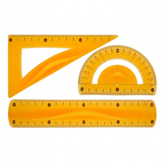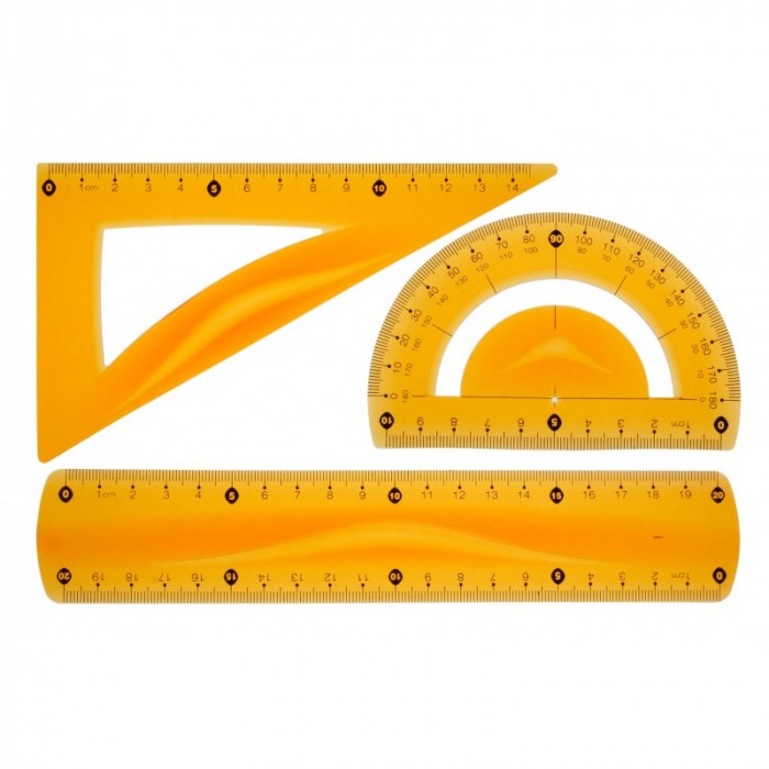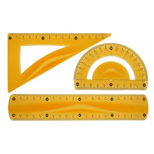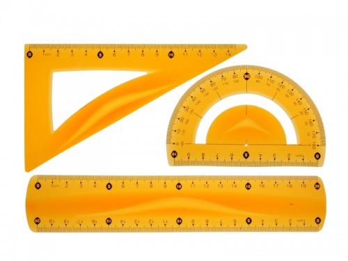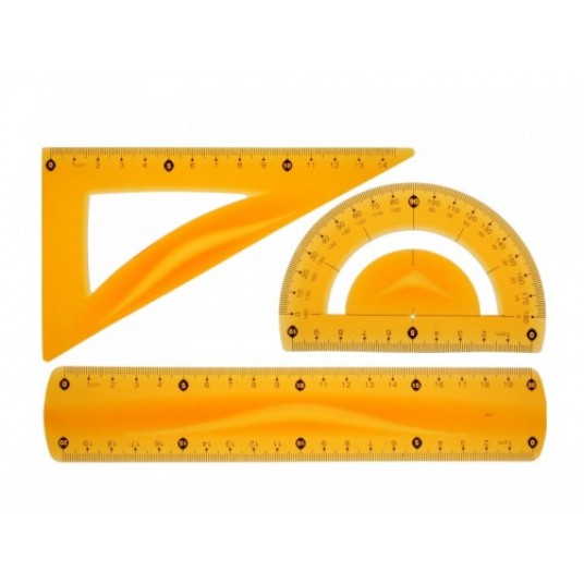 - Zestaw zawiera: linijkę-20cm, ekierkę-14,5cm, kontomierz-10cm