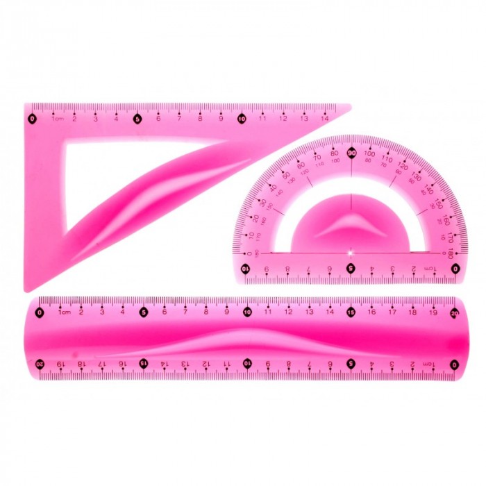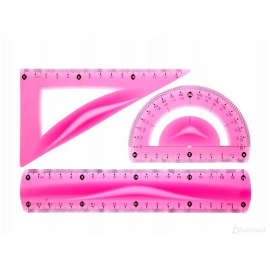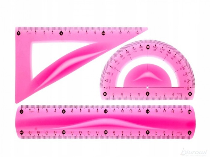 - Zestaw zawiera: linijkę-20cm, ekierkę-14,5cm, kontomierz-10cm