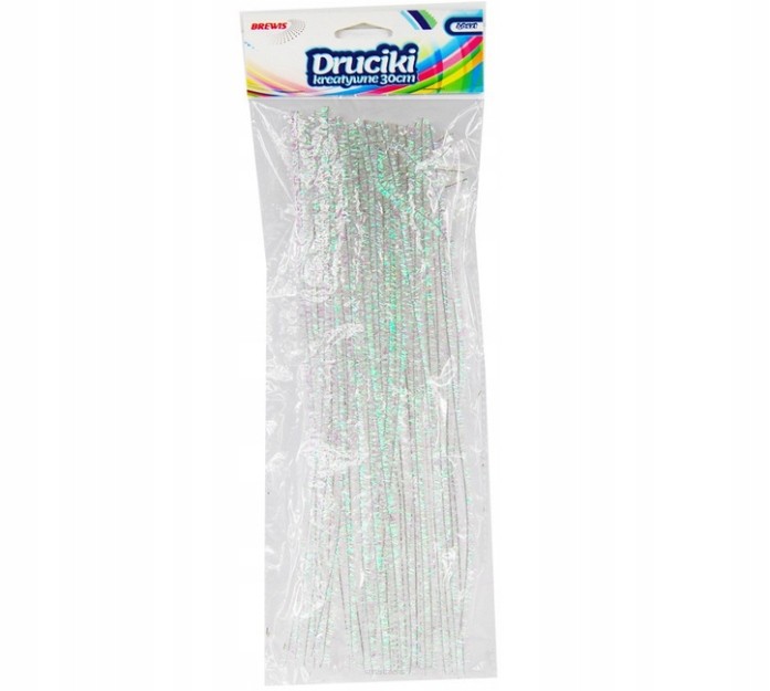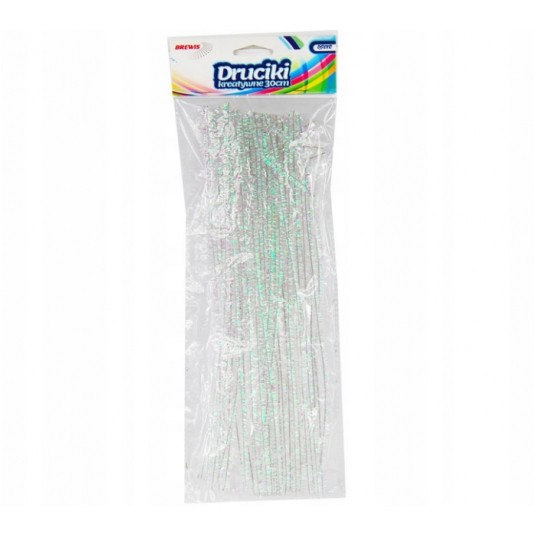 Druciki kreatywne standard 30cm 40 sztuk białe metalizowane