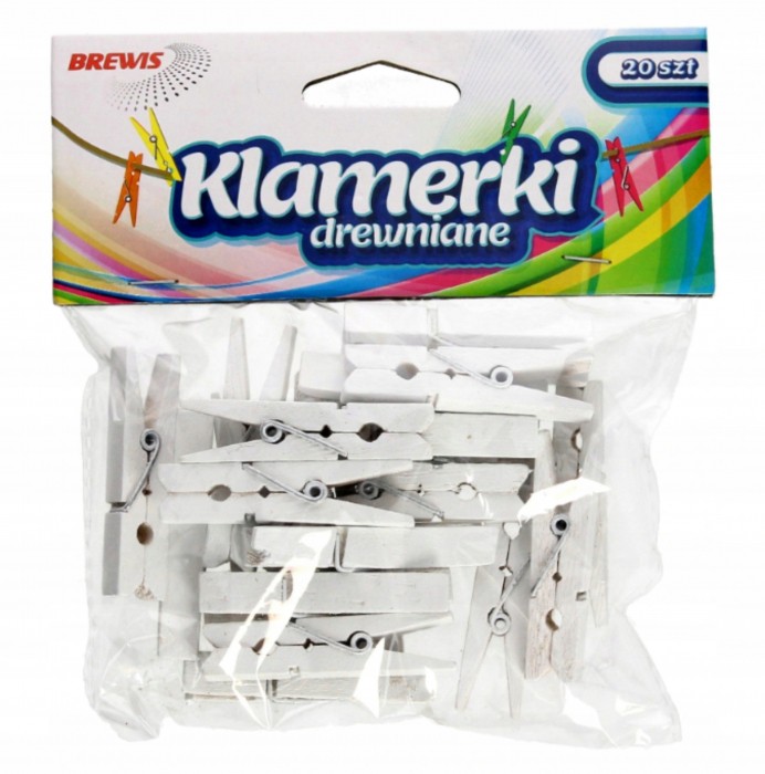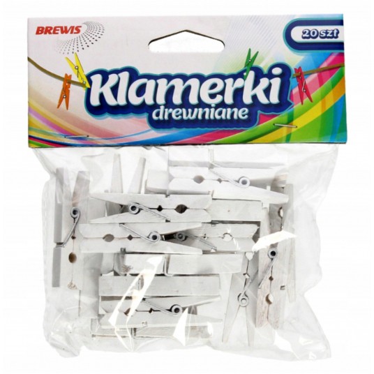 - Drewniane miniaturowe klamerki dają niewyczerpane możliwości zastosowania... galeria zdjęć na sznurku... winietki przyczepione do szklanek... dodatek do kartek z życzeniami lub podziękowań... przyczepianie karteczek do żywych kwiatów... i wiele wiele więcej - Wysokość: 4,5cm - Ilość w opakowaniu: 20szt