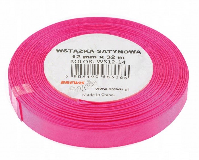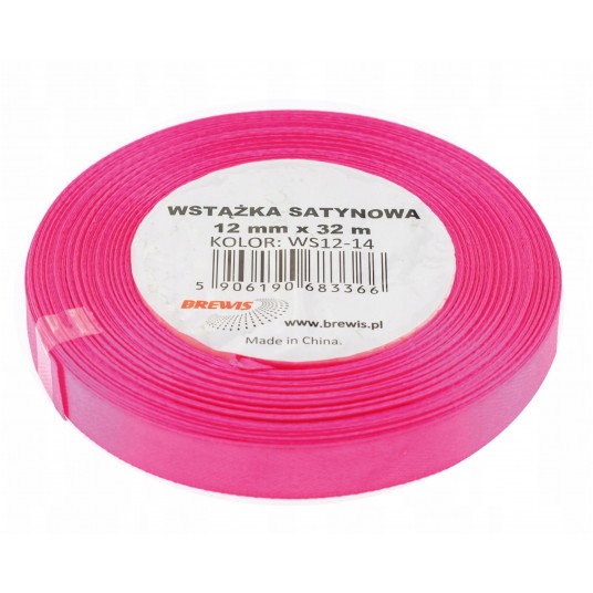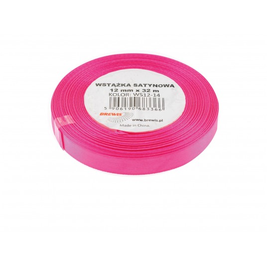 Wstążka Brewis satynowa 12mm 32m różowy fluo
