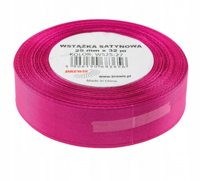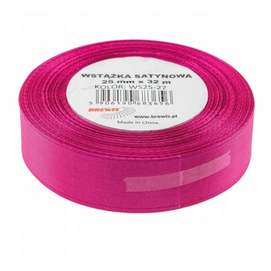 Wstążka Brewis satynowa 25mm 32m fuksja