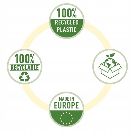 - Wykonana z bardzo mocnego PP w 100% pochodzącego z recyklingu
