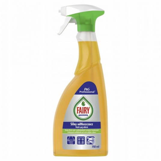 - Profesjonalny, silnie skoncentrowany odtłuszczacz Fairy Professional do czyszczęnia szczególnie zabrudzonych, tłustych powierzchni w kuchni tj. okapy, ściany, blaty robocze, stal nierdzewna - Pojemność 750 ml