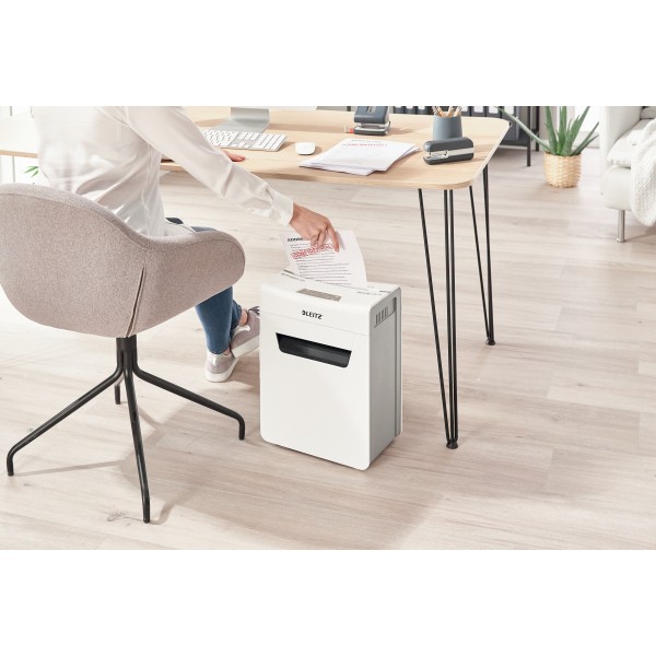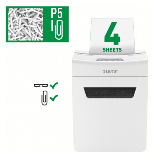 - Ta super cicha niszczarka papieru zapewnia spokojne środowisko pracy i nie przeszkadza w jej wykonywaniu. - Charakteryzuje się czystym i szybkim opróżnieniem wysuwanego kosza, a dzięki niewielkim rozmiarom zmieści się w każdym pomieszczeniu w domu lub pod biurkiem. - Łatwy w obsłusze panel dotykowy. - Technologai zapobiegająca zacięciom zapewniająca nieprzerwane niszczenie - automatycznie zatrzymuje i cofa papier po włożeniu zbyt dużej ilości papieru. - Niszczy również zszywki i spinacze. - 4 kartki A4 P-5 - Mikrościnki (2 x 15 mm)