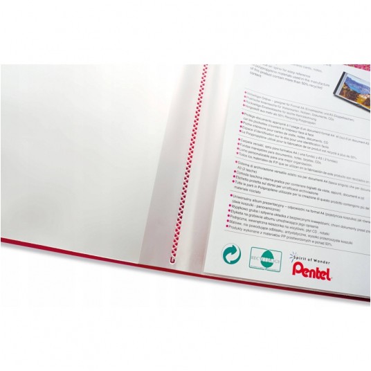- DCF644 z serii RECYCOLOGY to najwyższej jakości, uniwersalny album ofertowy do skutecznych i efektownych prezentacji - Szereg innowacyjnych mechanizmów mnoży możliwości – nadaje się zarówno do dokumentów formatu A3 (dwie koszulki – panoramiczne) lub formatu A4 (pojedyncza koszulka) - Wyposażony w matowe i wysoko przezroczyste koszulki usprawnia pokaz dokumentów - Komfortowe użytkowanie i niezwykle szybkie operowanie dodatkowo ułatwia ich antystatyczny status – koszulki się nie sklejają, podnosząc efektywność pracy podczas przewracania stron - Podręczna, wewnętrzna kieszeń na wizytówki, płyty CD lub notatki gwarantuje sprawną organizację wszystkich niezbędnych akcesoriów i dokumentów potrzebnych do bezbłędnej i atrakcyjnej prezentacji - Album ofertowy SIDE przełamie monotonię każdego biura, stanowiąc smakowity akcent kolorystyczny – wyjątkowo gruba i sztywna okładka z bezpiecznymi krawędziami z jednej strony chroni dokumenty przed zniszczeniem, z drugiej zaś świetnie prezentuje się w wesołych tonacjach barw - System bocznego otwierania koszulek zabezpiecza papiery przed wypadaniem, zapobiegając nerwowym incydentom, które mogą popsuć nawet najlepszą prezentację - Dobrze widoczna etykieta na grzbiecie albumu umożliwia jego czytelne opisanie i szybką identyfikację - Ilość kieszeni: 40 - Format papieru: A4/A3 - Ten produkt został wykonany w 50% z materiałów przetworzonych!