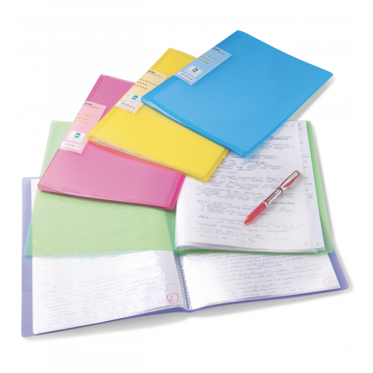 - Eksplozja kolorów na Twoim biurku!, - Prążkowana okładka w jaskrawych odcieniach. - Etykieta na grzbiecie albumu umożliwiająca jego opisanie. - Matowe, nie powodujące odblasku, antystatyczne, wysoko przezroczyste koszulki. - Wykonany w ponad 50% z materiałów przetworzonych - Format papieru: A4 - Ilość kieszeni: 30