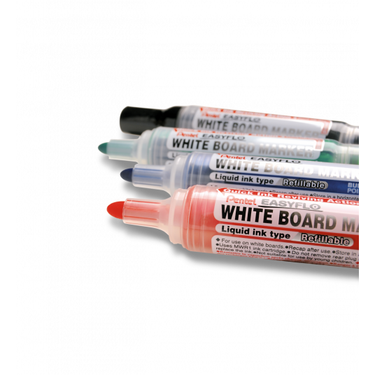 - Marker do białych i porcelanowych tablic. - Jest to ekonomiczne rozwiązanie dla biura lub szkoły, gdyż zawiera płynny tusz i system ponownego napełniania. - Na naboje atramentowe MWR1. - Wykonany w 93% z materiałów przetworzonych - Grubość końcówki: 6 mm. - Grubość linii pisania: 2,0 - 2,1 mm. - Długość linii pisania: 950 m. - Do wyboru w kolorze: czarnym, czerwonym, niebieskim i zielonym.