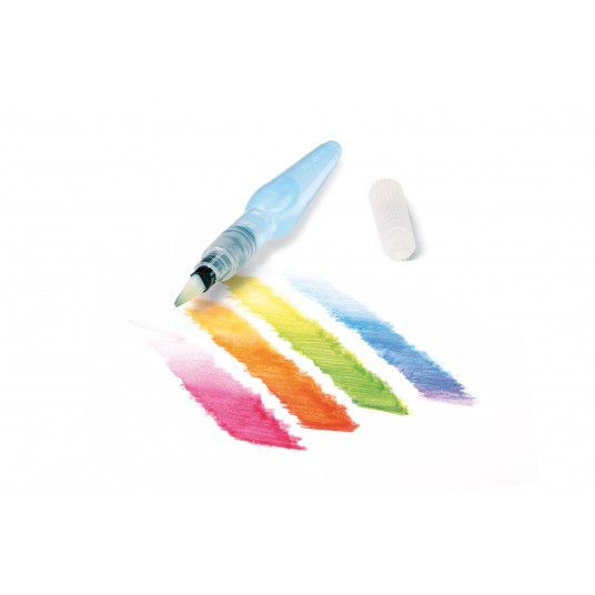 - Pędzelek wodny FRH - Niezastąpiony w pracy z akwarelami i kredkami akwarelowymi - Do tworzenia ilustracji, pejzaży, melancholijnych obrazów - Prosty w obsłudze, łatwy w czyszczeniu (moczymy go w wodzie) - Służy do rozmazywania kolorów - Higieniczny i wygodny w użytkowaniu - Zastępuje tradycyjny pędzelek i kubek na wodę - Przezroczysta obudowa pozwala kontrolować ilość płynu w zbiorniczku - Poprzez delikatne ściśnięcie obudowy doprowadzamy wodę do końcówki