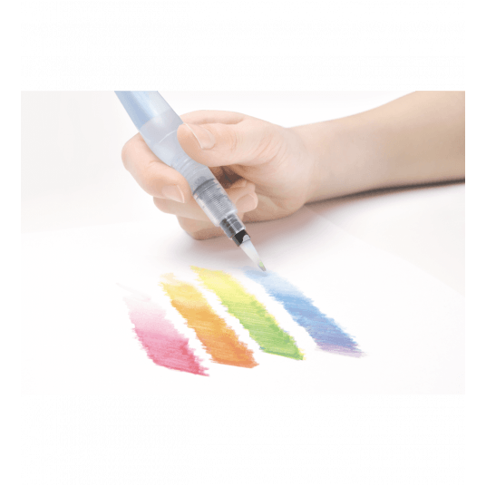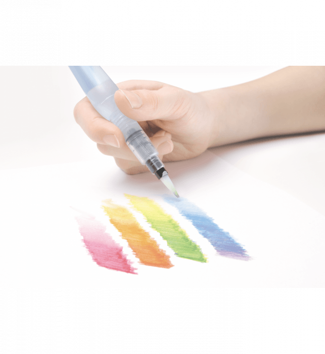 - Pędzelek wodny FRH. - Niezastąpiony w pracy z akwarelami i kredkami akwarelowymi. - Do tworzenia ilustracji, pejzaży, melancholijnych obrazów. - Prosty w obsłudze, łatwy w czyszczeniu (moczymy go w wodzie). - Służy do rozmazywania kolorów. Higieniczny i wygodny w użytkowaniu. - Zastępuje tradycyjny pędzelek i kubek na wodę. - Przezroczysta obudowa pozwala kontrolować ilość płynu w zbiorniczku. - Poprzez delikatne ściśnięcie obudowy doprowadzamy wodę do końcówki.