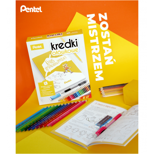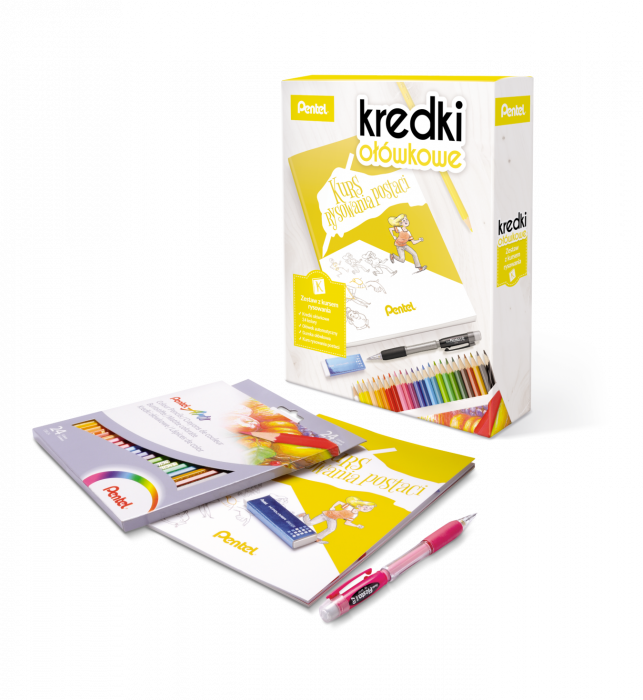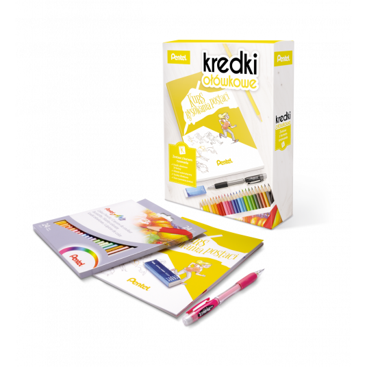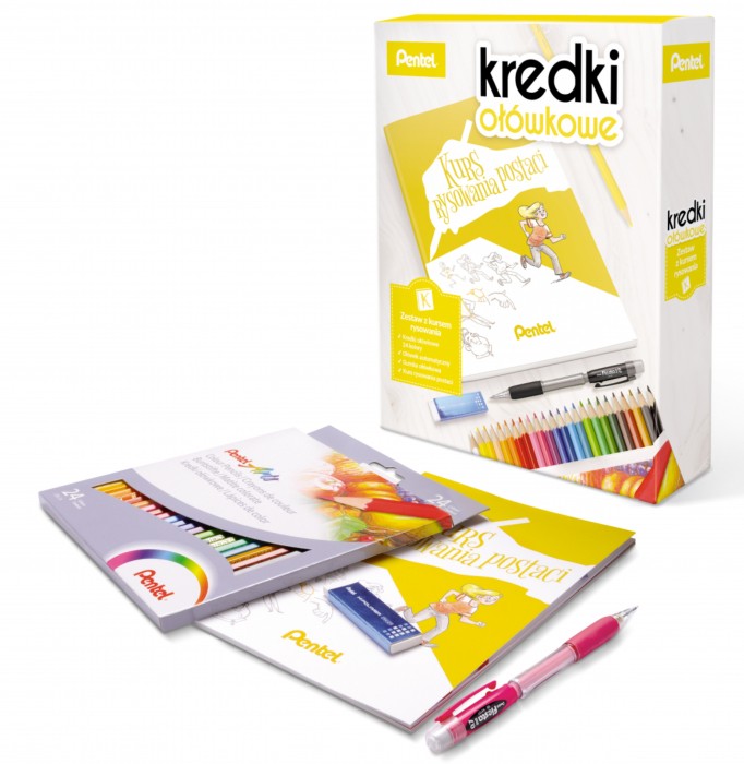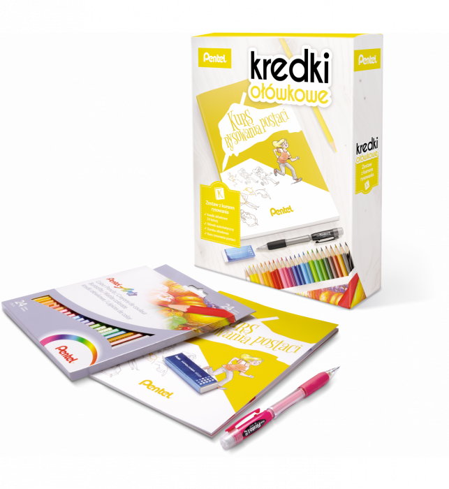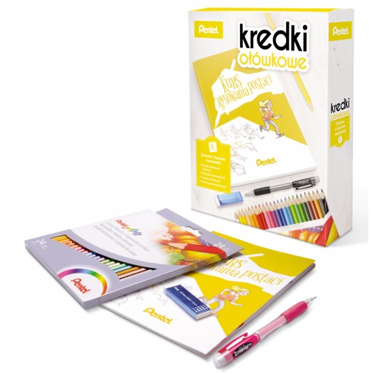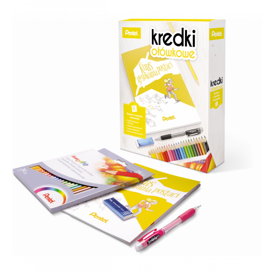 - W zestawie bogato ilustrowany kurs rysowania postaci, kredki ołówkowe 24 kolory, ołówek i gumka. - Kurs wyjaśnia i pokazuje, że rysowanie to sztuka, której można się nauczyć cierpliwie i dokładnie studiując kolejne kroki. - Książeczka podzielona jest na 14 tematycznych rozdziałów: oczy, nos, uśmiech, twarz, głowa, uszy, włosy, emocje, ciało, ręce, nogi, tors i pośladki, ruch, ubranie. - Z takim przygotowaniem i narzędziami – rysować każdy może!