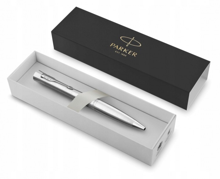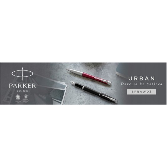 - Elegancki i zarazem nowoczesny długopis Parker Urban Classic stalowy CT. - To bardzo stylowy produkt, który idealnie sprawdzi się jako główny produkt piśmienniczy dla osób ceniących funkcjonalność połączoną z modnym designem. - Długopis Parker Urban jest bardzo wytrzymały, a jego nowoczesny miejski styl to atut, który przyciąga przede wszystkim młode osoby. - Wytrzymały korpus sprawia, że świetnie nadaje się do codziennego użytkowania przez osoby piszące dużo, które nie pamiętają o noszeniu etui, czy piórnika. - Jego cechy zewnętrzne oraz nowoczesny design najczęściej trafiają w gust osób młodych i energicznych, szukających długopisu, który podkreśli ich niezależność i zdecydowanie. - Korpus długopisu Parker Urban Classic wykonany został z mosiądzu. - Posiada piękny, gładki i miły w dotyku korpus. - Ma on elegancki, srebrny kolor. - Dzięki chromowanym wykończeniom produkt ten wygląda niepowtarzalnie oraz nowocześnie. - Efekt ten dodatkowo podkreśla zastosowanie obrotowego mechanizmu wysuwania wkładu. - Z uwagi na swój uniwersalny wygląd, trafia w gust mężczyzn i kobiet.