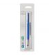 - Pióro wykonane z tworzywa sztucznego w kolorze niebieskim.