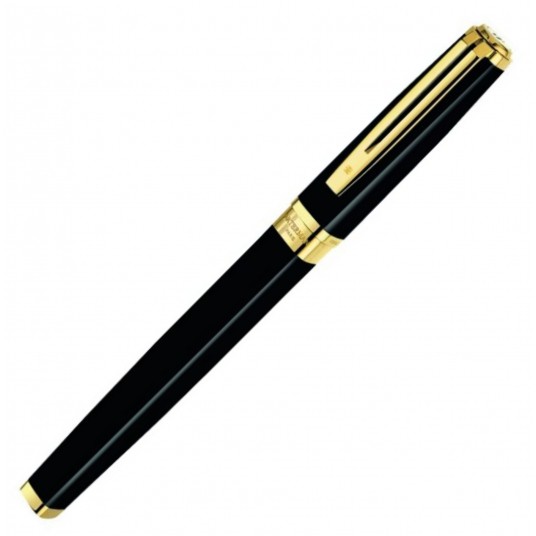 - Dzięki niepowtarzalnemu kwadratowemu przekrojowi pióro wieczne Waterman Exception to prawdziwy popis technicznej biegłości. - Cztery warstwy głębokiego lakieru na korpusie nadają niezwykle subtelną fakturę, a pomysłowy zatrzask sprawia, że nasadka zawsze spoczywa prosto względem korpusu. - Daj się ponieść kreatywności i pozwól inspiracji płynąć dzięki temu niezaprzeczalnie paryskiemu wzornictwu. - Każde z luksusowych piór wiecznych zostało wykonane we Francji i oferowane jest w opakowaniu prezentowym Waterman premium. - Objęte 2-letnią, międzynarodową gwarancją, którą można rozszerzyć do 4 lat dzięki rejestracji. - Wyrafinowany, kwadratowy przekrój zwęża się w zaokrąglonej części przedniej, zapewniając pewność i wygodę trzymania. - Korpus pokryty luksusowym, głębokim, czarnym lakierem i platerowane złote pierścienie i klip zapewniają wykończenie premium. - Kunsztownie grawerowana stalówka z 18-karatowego złota platerowanego rodem eksponuje ikoniczny emblemat Waterman. - Kunsztownie wykonane we Francji, by podkreślić Twój rozpoznawalny styl. - Dostępne w ciemnoniebieskim opakowaniu prezentowym Waterman premium; doskonałe, by uczcić wyjątkowe okazje. - Rodzaj stalówki: F