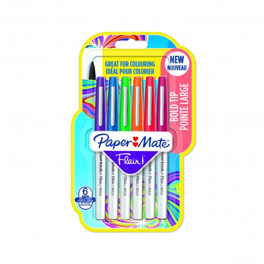 - The Flair Original w wersji z szeroką końcówką. - Tusz na bazie wody, który nie przechodzi przez papier. - Nylonowa końcówka. - Doskonały do pisania i rysowania. - Etui 6 kolorów