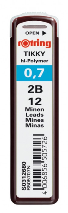 - Rysiki, grafity firmy ROTRING TIKKY polecane są do pisma technicznego, rysunku i codziennego pisania, na papierze, kartonie i kalce. - Twardość rysika: 2B - Grubość linii pisania: 0.7 mm. - Wysokiej jakości grafitowe wkłady. - Odpowiednie dla wszystkich standardowych automatycznych ołówków. - Intensywne pełne czarne linie. - Łatwo wymazywalny ślad. - Praktyczne plastikowe opakowanie umożliwiające czystą wymianę grafitu dzięki nadstawce. - Przeznaczenie: papier, karton. - Jedno opakowanie zawiera 12 grafitów.