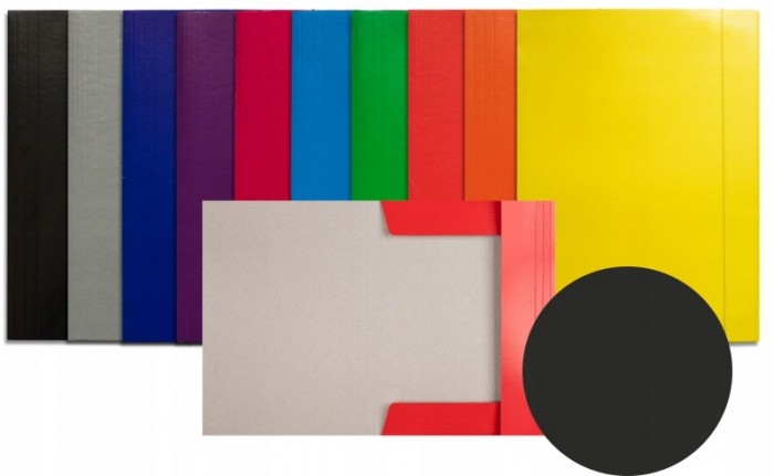 - Wyposażona w gumkę wzdłuż długiego boku. Posiada trzy wewnętrzne klapki zabezpieczające dokumenty