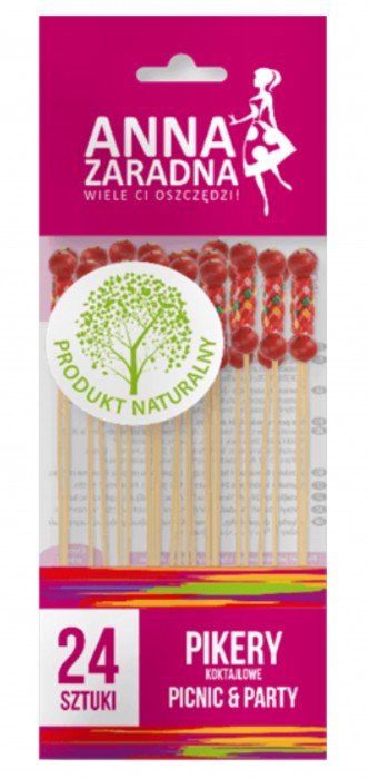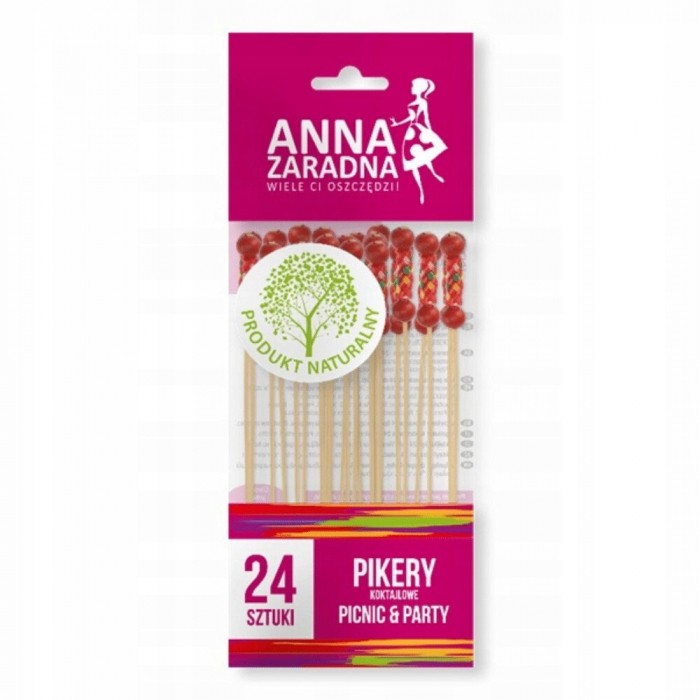 - Pikery koktajlowe idealnie nadają się do przygotowania koreczków lub innych przekąsek. - Zaostrzone z jednej strony, a z drugiej posiadają sznureczek ułatwiający trzymanie pikera. - Pikery wykonane z naturalnego ekologicznego kompostowalnego surowca. - Długość: 12 cm. - Ilość: 24 sztuki. - Kolor sznureczka: czerwony lub żółty. - Drewniane. - Kompostowalne.