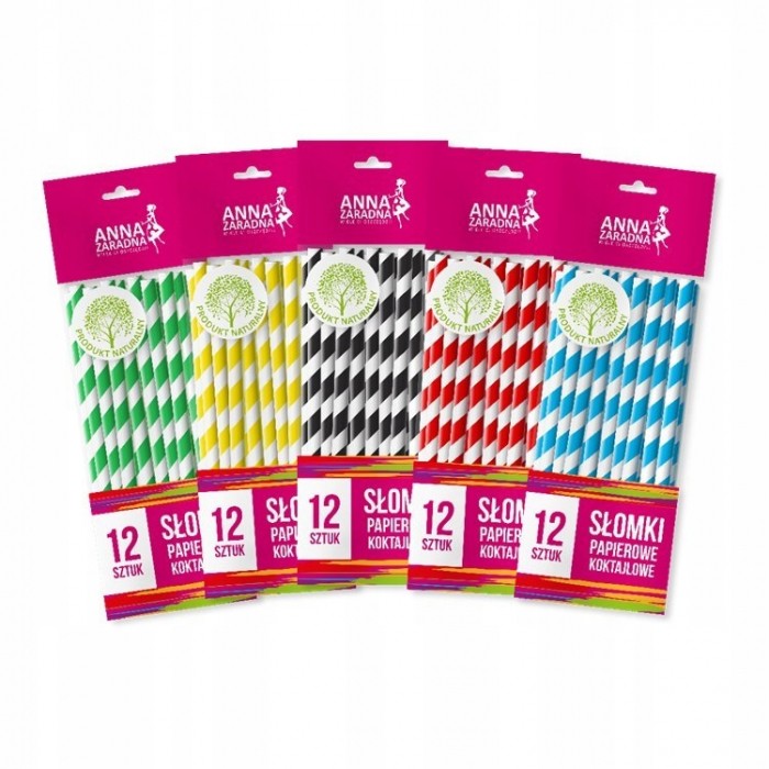 - Słomki papierowe Anna Zaradna są dostępne w wielu kolorach: zielonym, niebieskim, czerwonym, żółtym, czarnym - mix w kartonie, jeden kolor w pakiecie. - Koktajlowe słomki papierowe są idealną ekologiczną alternatywą dla tradycyjnych słomek plastikowych. Idealnie nadają się na grilla lub imprezy okolicznościowe. - Same w sobie mogą być ozdobą stołu. - Pity przez słomkę napój nie zmienia smaku. - Słomki papierowe są produktem jednorazowym. - Słomki są wykonane z papieru, tworzywa kompostowalnego. - Średnica: 1 cm - Długość: 19,7 cm - Ilość: 12 sztuk - Kolor: mix - kolor wysyłany losowo - Surowiec: papier - Słomki proste - Produkt jednorazowy - Kompostowalne