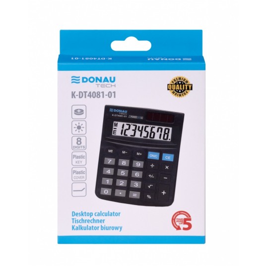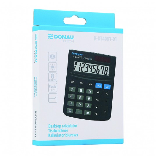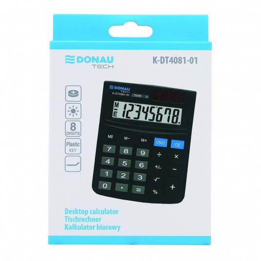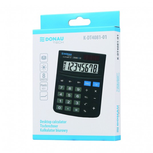Kalkulator biurowy Donau tech, 8-cyfrowy wyświetlacz, 134x104x17 mm, czarny