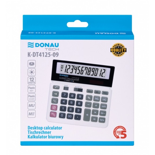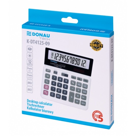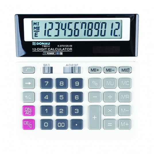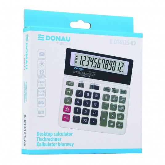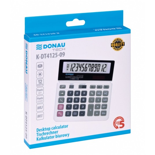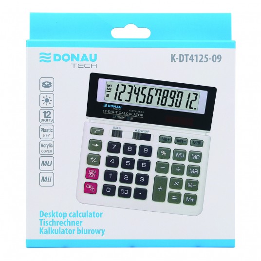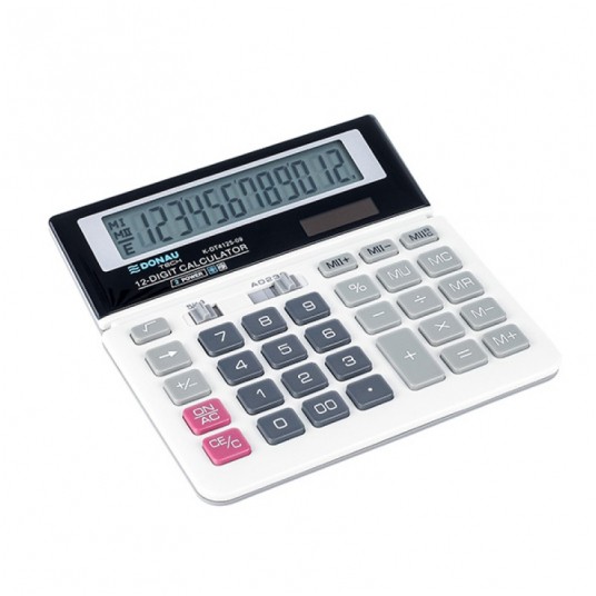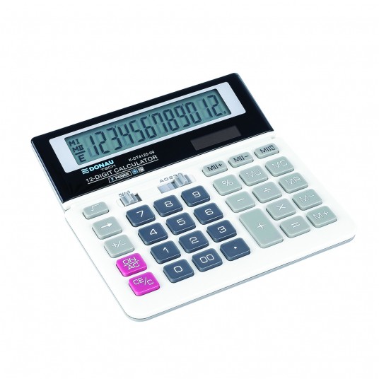 Kalkulator biurowy Donau tech, 12-cyfrowy wyświetlacz, 156x152x28 mm, biały
