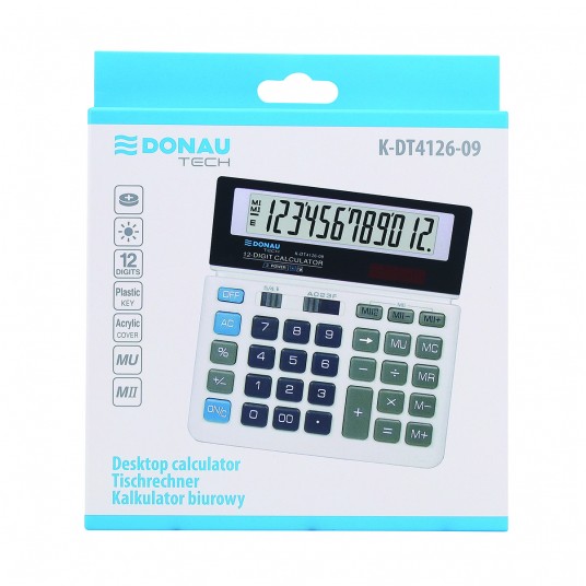 Kalkulator biurowy DONAU TECH, CI-SDC868L, 12-cyfr. wyświetlacz, wym. 155x152x28 mm, biały