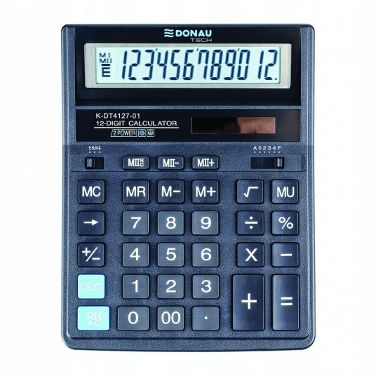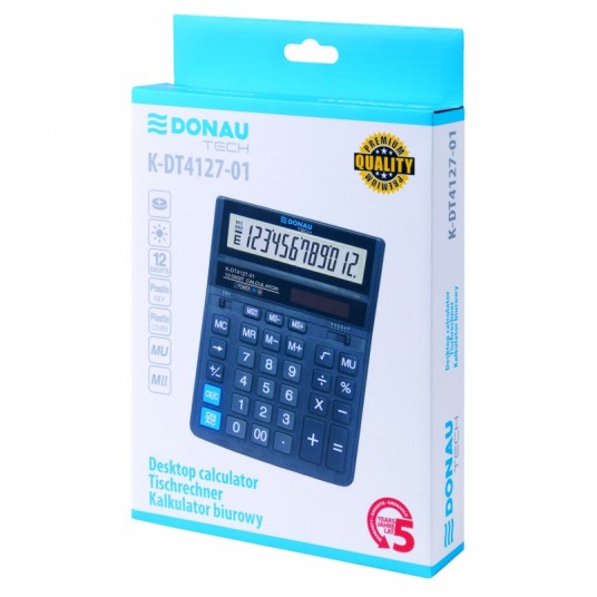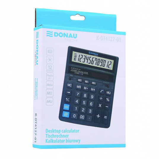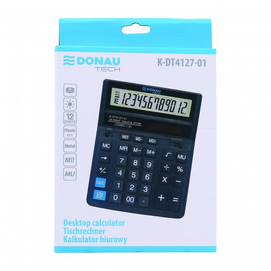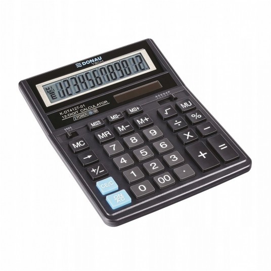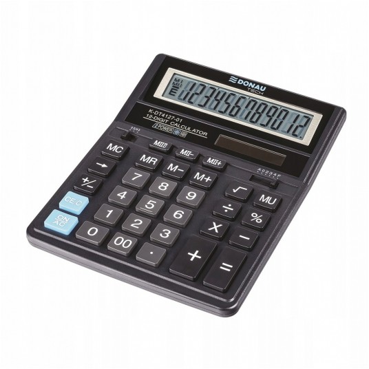 Kalkulator biurowy Donau tech, 12-cyfrowy wyświetlacz, 203x158x31 mm, czarny