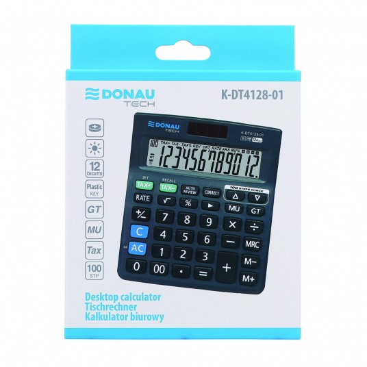 - Kalkulator biurowy z 12-cyfrowym wyświetlaczem z zasilaniem bateryjno-solarnym