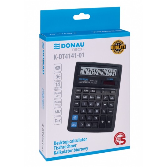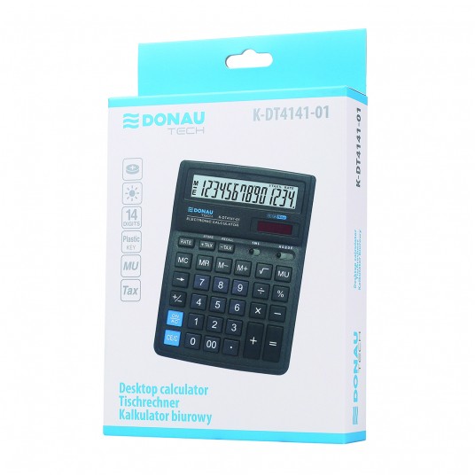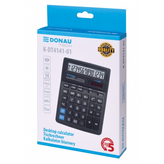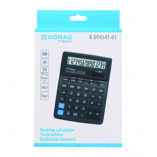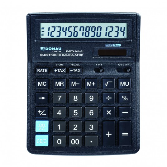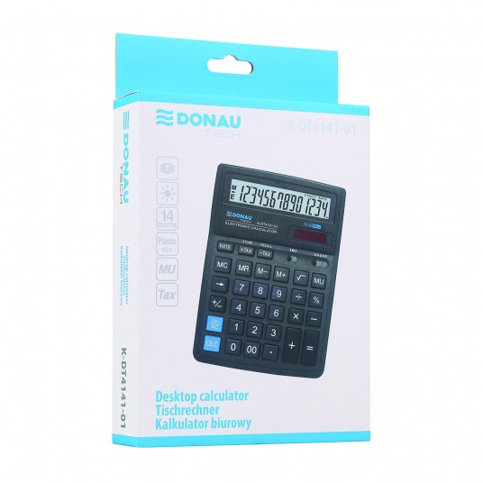 Kalkulator biurowy DONAU TECH, CI-SDC554S, 14-cyfr. wyświetlacz, wym. 190x143x40 mm, czarny