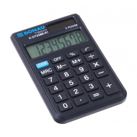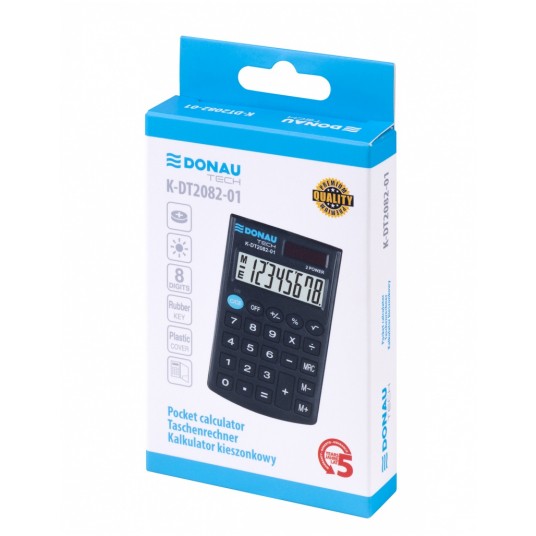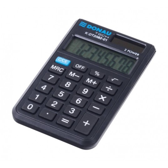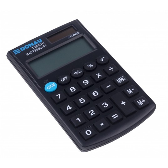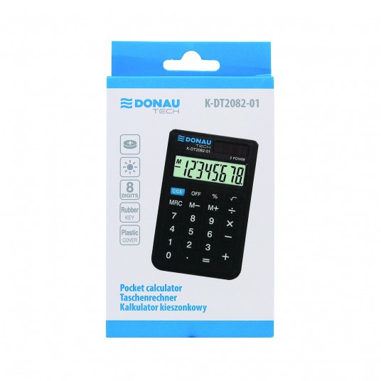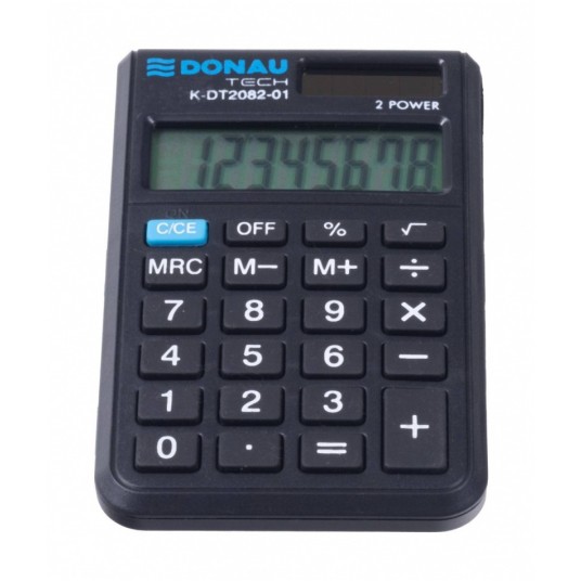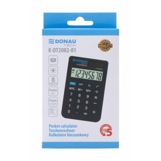 - kalkulator kieszonkowy z 8-cyfrowym wyświetlaczem z zasilaniem bateryjnym - wymiary: 97 x 60 x 11 mm - funkcja pierwiastka kwadratowego oraz obliczania procentów - wyłącza się automatycznie - 5 lat gwarancji - kolor: czarny