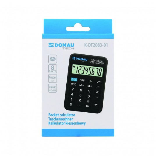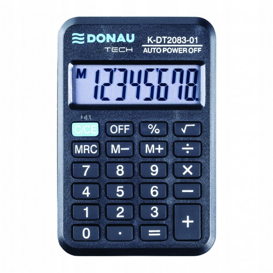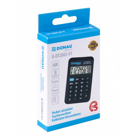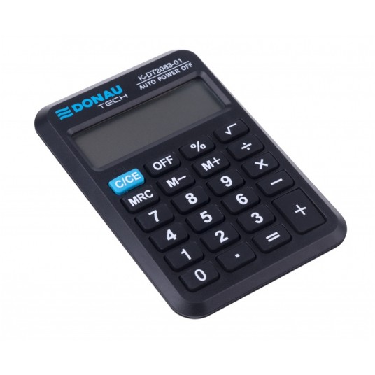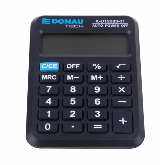Kalkulator kieszonkowy Donau tech, 8-cyfr. wyświetlacz, wym. 89x59x11 mm, czarny