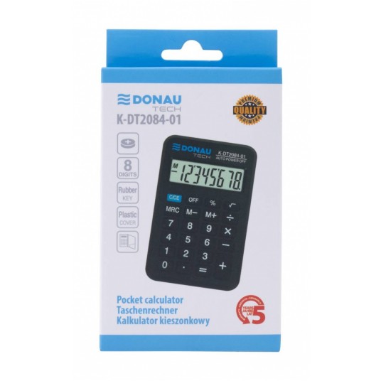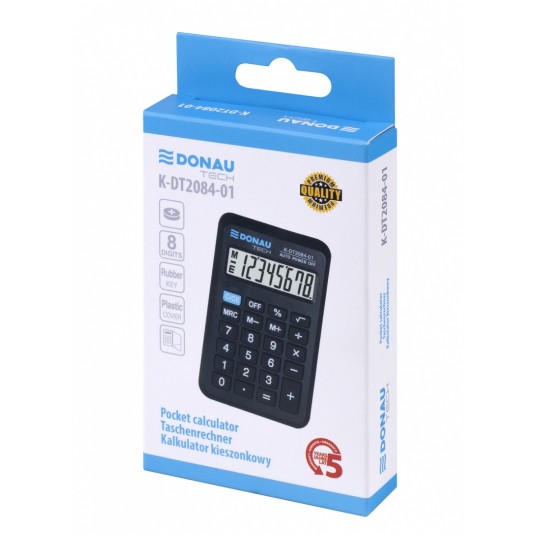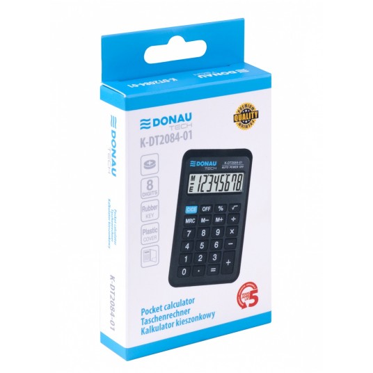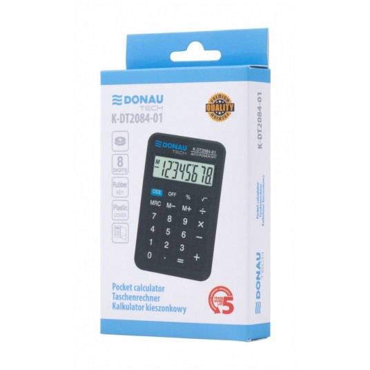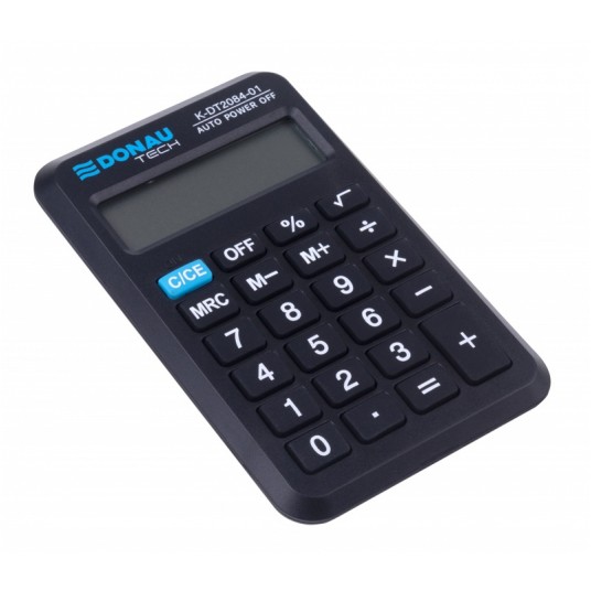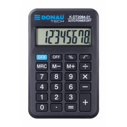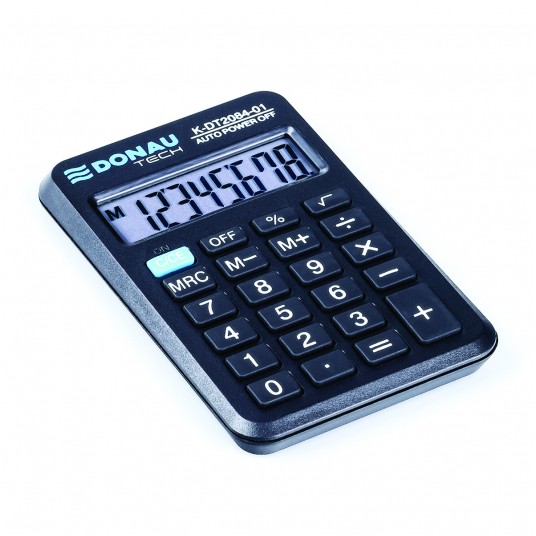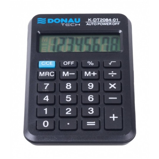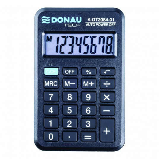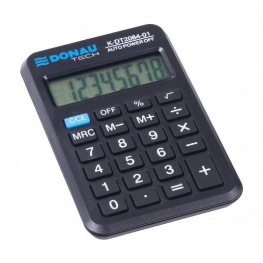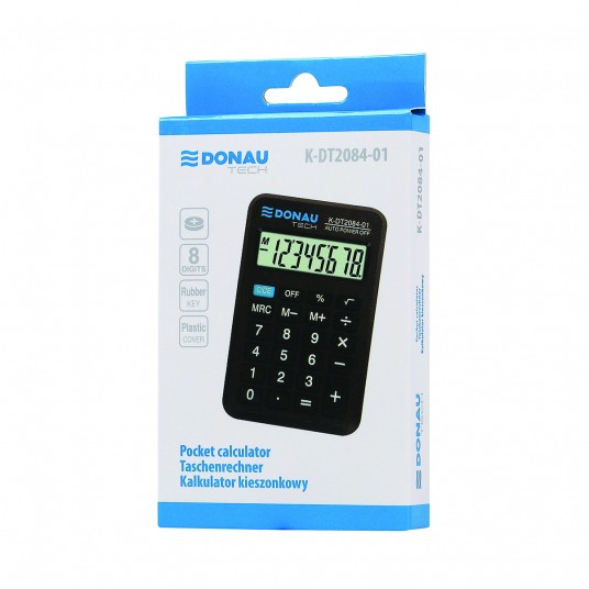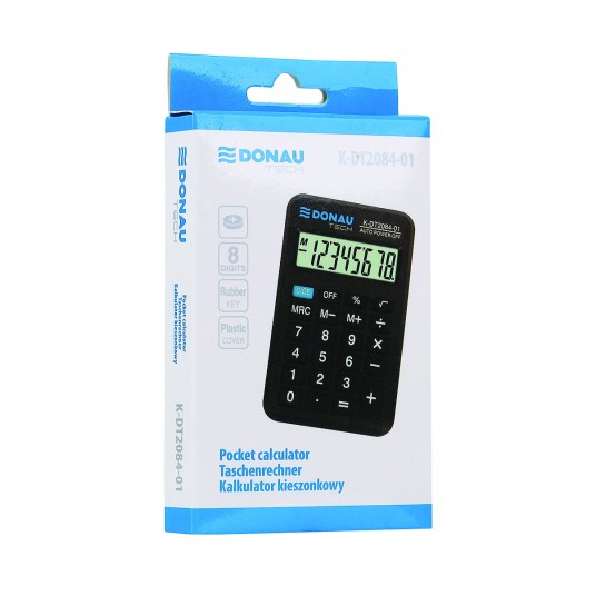 - kalkulator kieszonkowy z 8-cyfrowym wyświetlaczem z zasilaniem bateryjno-solarnym - wymiary: 97 x 60 x 11 mm - funkcja pierwiastka kwadratowego oraz obliczania procentów - wyłącza się automatycznie - 5 lat gwarancji - kolor: czarny