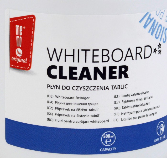 - Płyn do regularnego czyszczenia tablic suchościeralno-magnetycznych z powierzchnią lakierowaną lub ceramiczną