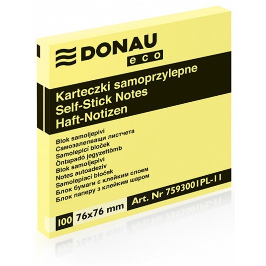 Bloczek samoprzylepny Donau eco 76x76 mm 100 kartek żółty Donau