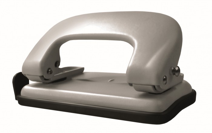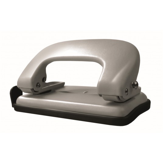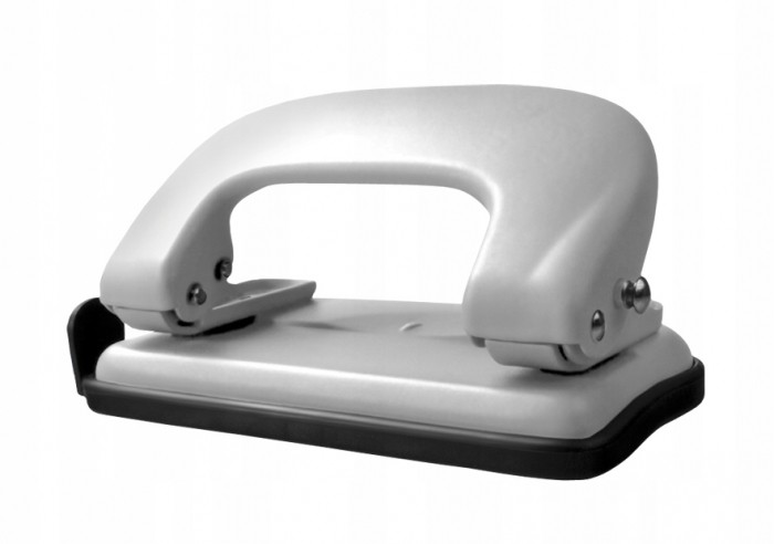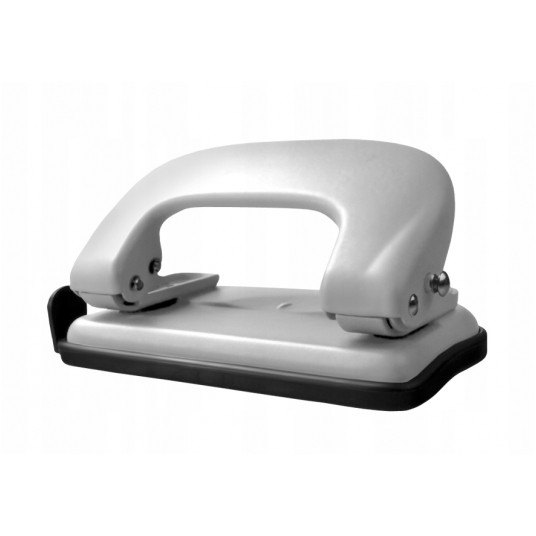 - Metalowy dziurkacz biurowy w matowej obudowie. - Posiada blokadę dźwigni, wskaźnik środka strony i ogranicznik formatu. - Dziurkuje do 10 arkuszy. - Kolor: szary