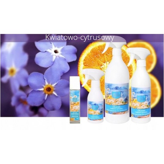 Kwiatowo-cytrusowy to przyjemny zapach letnich kwiatów, połączony z nutą dojrzałych, orzeźwiających cytrusów, przeniesie Cię w świat ogrodów pełnych słońca. Intensywna i długotrwała nuta zapachowa polecana do stosowania we wszystkich pomieszczeniach, szczególnie w łazienkach i toaletach.