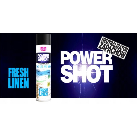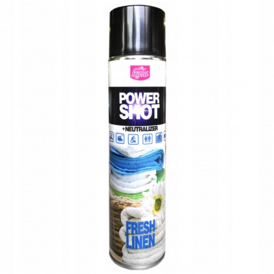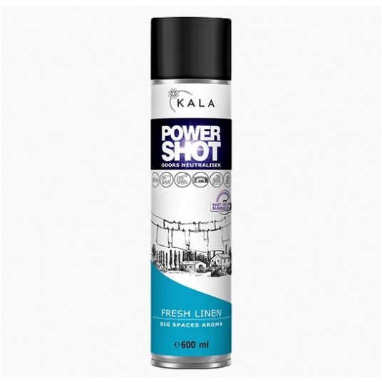 Neutralizator nieprzyjemnych zapachów, odświeżacz Kala POWER SHOT zapach FRESH LINEN (świeże pranie) (600 ml) to zapach nieskazitelnej czystości, prania, które właśnie zostało rozwieszone do wysuszenia na słonecznej polanie. Doskonale sprawdzi się wszędzie, gdzie chcemy podkreślić i uwydatnić czystość i higienę.