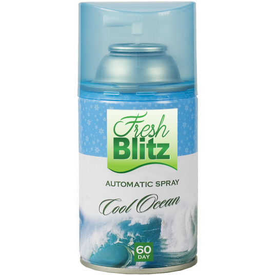 - COOL OCEAN to świeży i rześki i wyrazisty zapach porannej bryzy na brzegu oceanu - Nie tylko odświeża, ale i neutralizuje nieprzyjemne zapachy - Wydajność: 60 dni zapachu – 3000 dozowań - Fresh Blitz 260 to bardzo dobrej jakości odświeżacz powietrza 3 w 1 – nie tylko odświeża, ale i neutralizuje nieprzyjemne zapachy, pozostawiając przyjemną nutę zapachową w Twoim biurze i domu - Wydajność: 60 dni zapachu – 3000 dozowań (przeważnie wkłady oferują 2000-2200 dozowań) - Wkład pasuje do większości elektronicznych urządzeń rozpylających m.in.: Merida, Air Wick Freshmatic