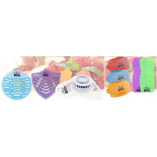 Wkładki zapachowe jednocześnie zabezpieczają przed zapchaniem się odpływu i pasują praktycznie do większości pisuarów wodnych i bezwodnych.