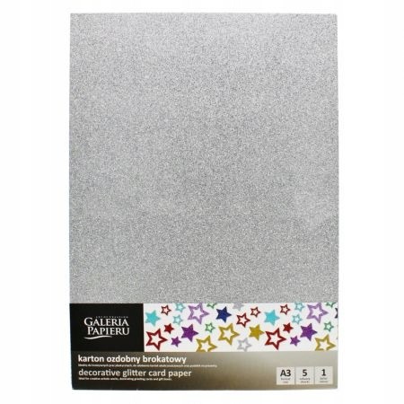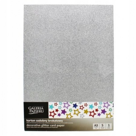 Karton A3 brokatowy srebrny 5 sztuk 210g